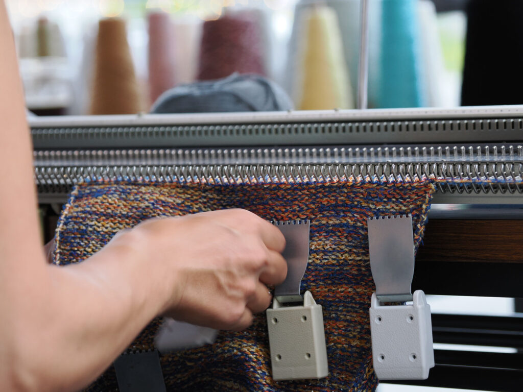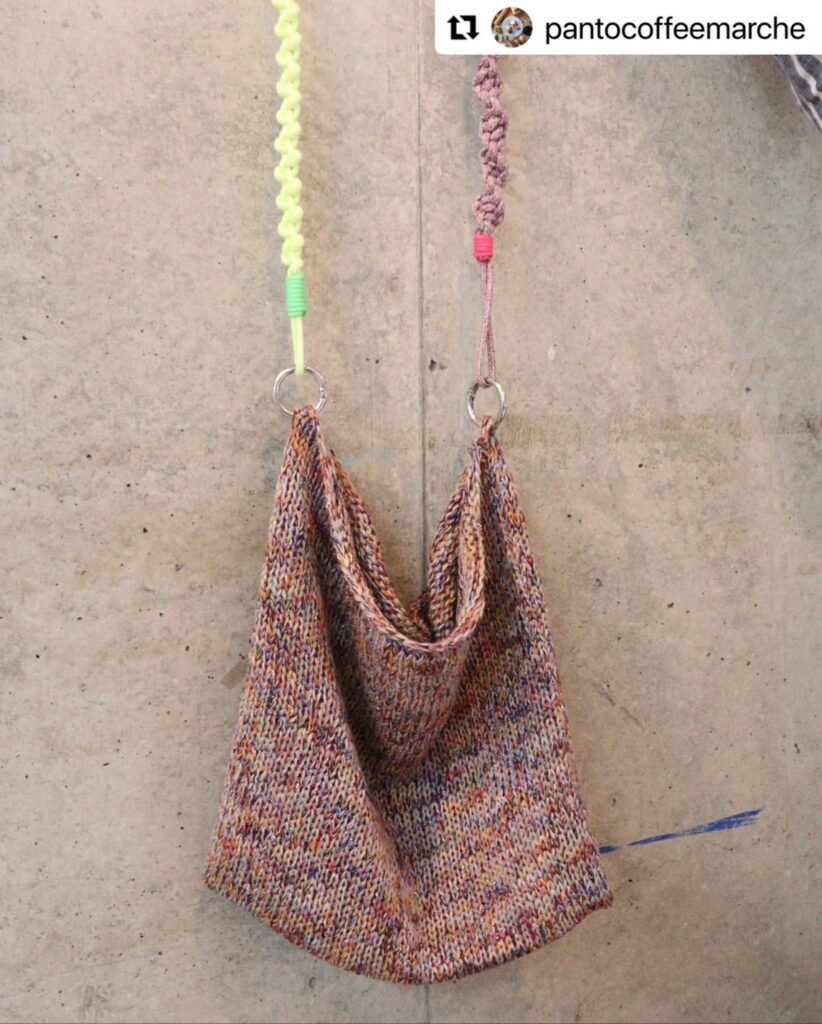 葛尾村のニット工場の残糸と6.5mmスチール編み機を使って、オリジナルニットを作りましょう。ストールかニットバッグを選べます。